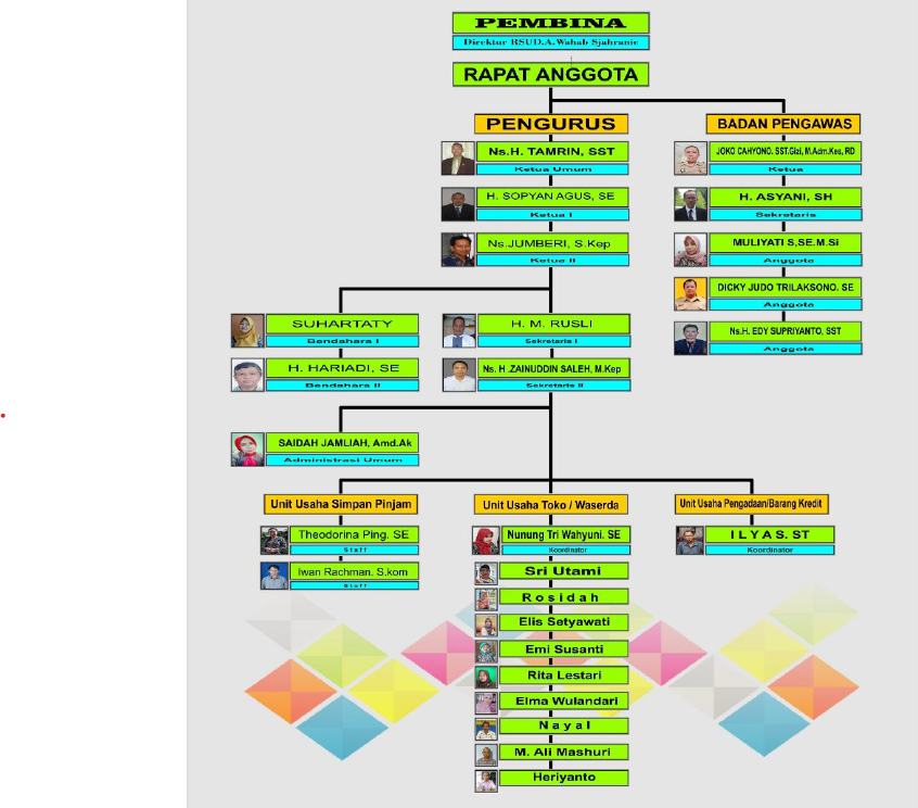 Jumlah Pengurus : 7 OrangJumlah Pengawas : 5 OrangJumlah Karyawan : Karyawan Toko : 9 OrangSimpan Pinjam : 2 OrangAdministrasi : 2 OrangBarang Kredit : 1 Orang